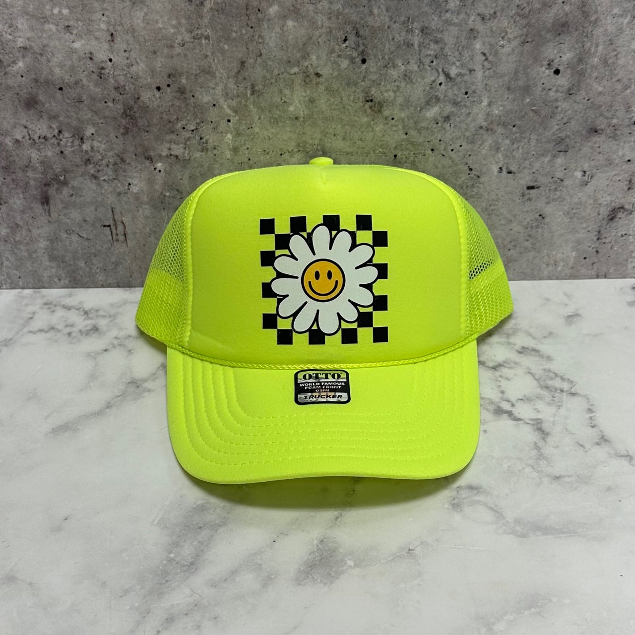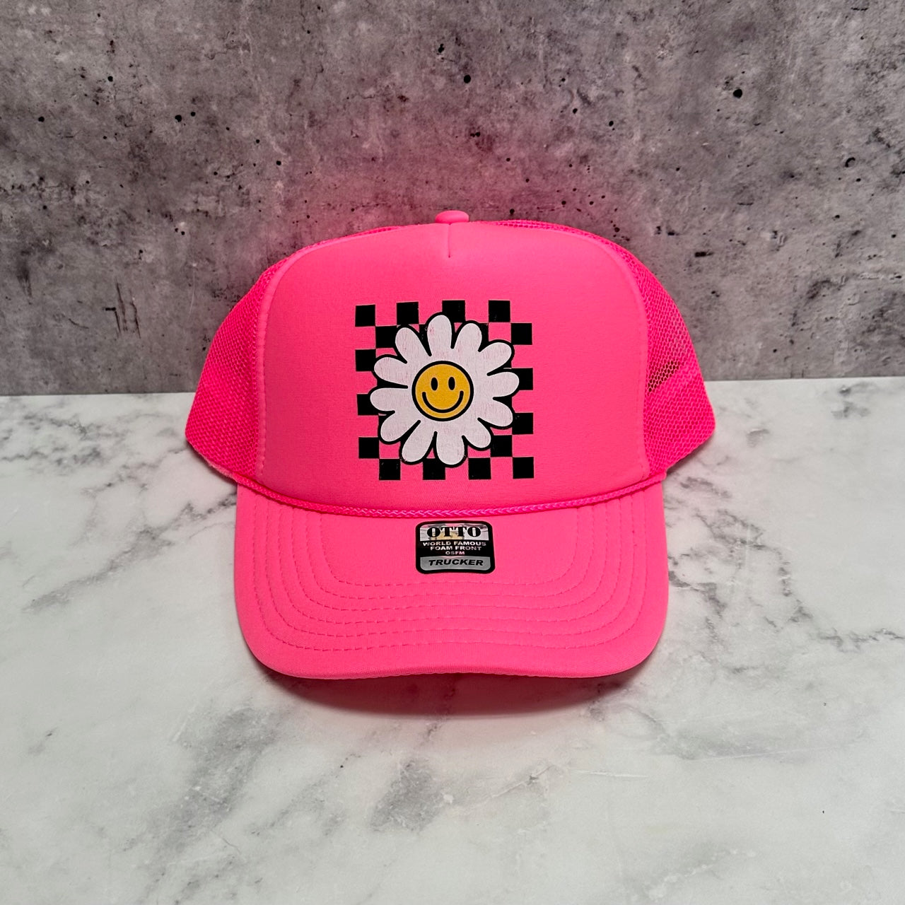 Checkered Smiley Trucker Hat
